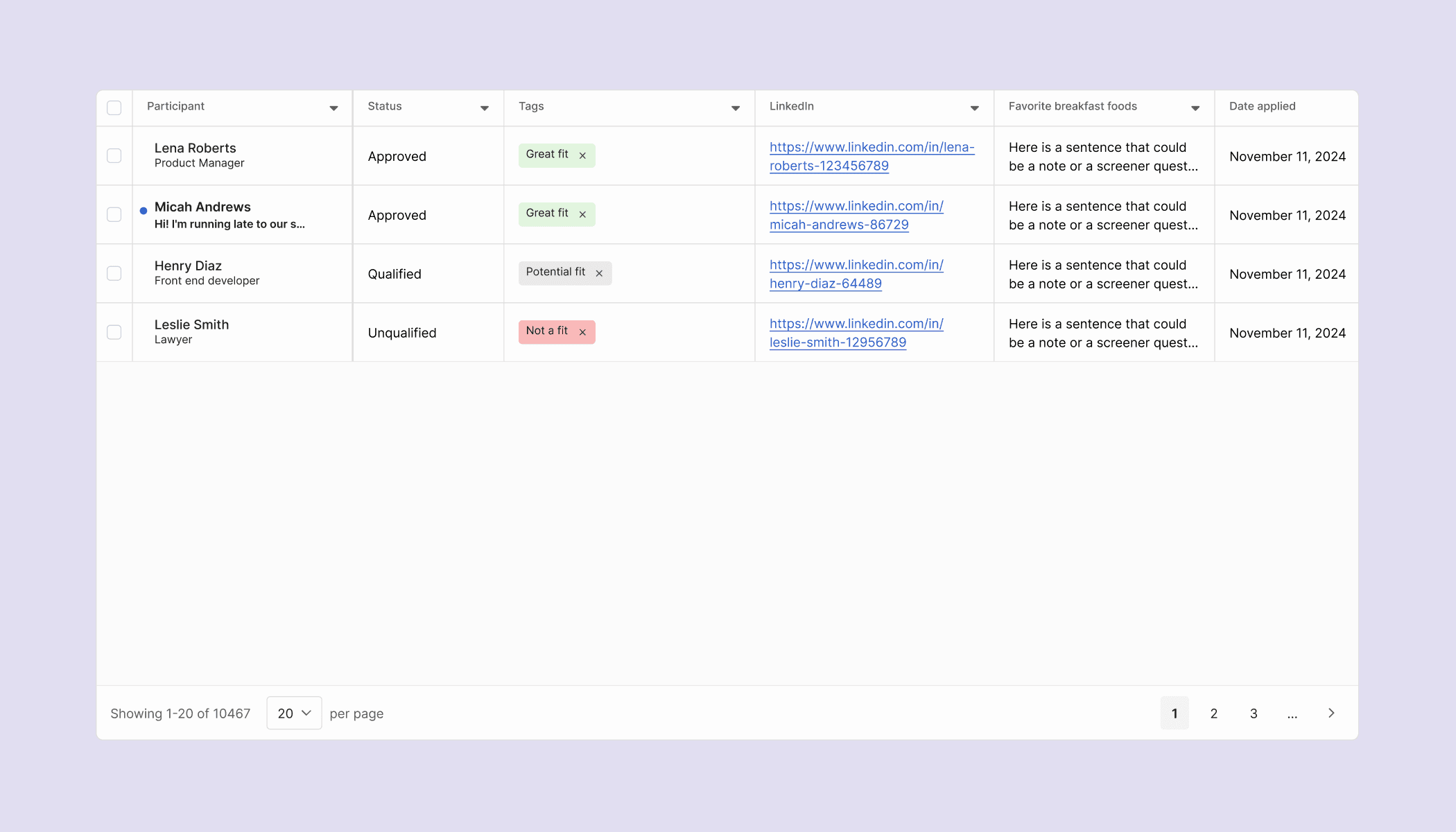 At User Interviews I've owned end-to-end design of complex, cross-platform features including research quotas, video screening, CRM panel structure and search, screener question bank, advanced filtering, funnel automation and dynamic profiles. These designs directly contributed to sustained growth in completed sessions over four years. Below are several end to end projects I owned.